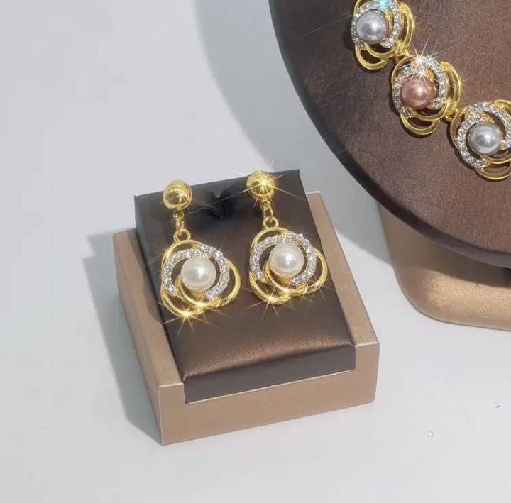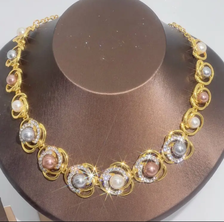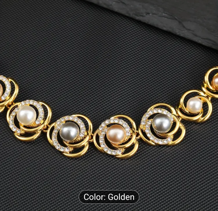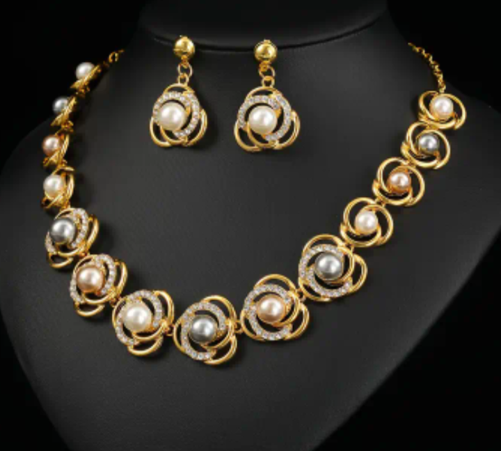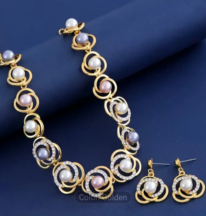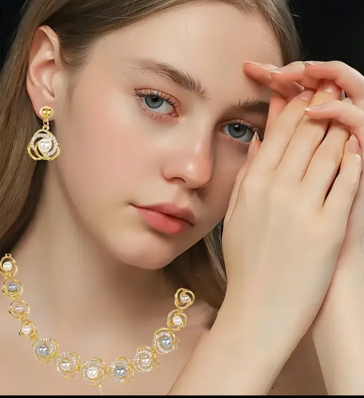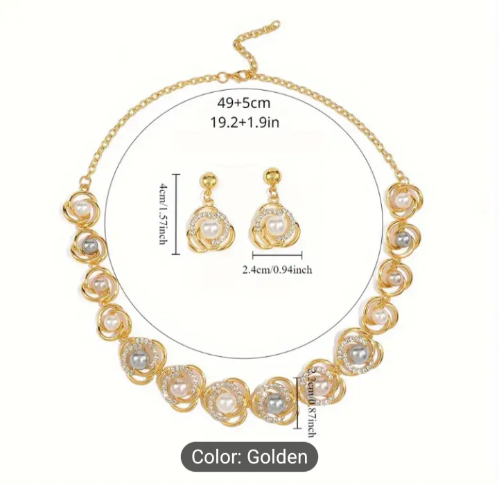 European And American Fashion Light Luxury Imitation Pearl Flower Two-Piece Set - Earrings, Collar Necklace. Wedding Dress High Accessories Necklace, Multi-Functional Gift. High-End Luxury Two-Piece Set, Daily Wearable, Daily Gift
