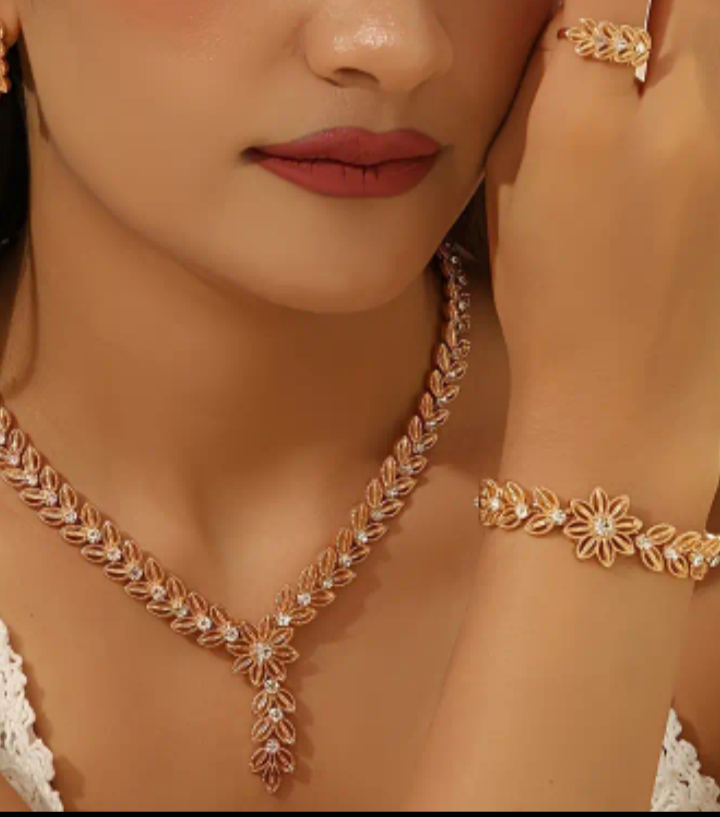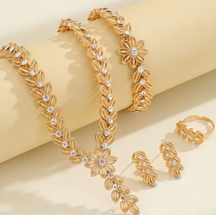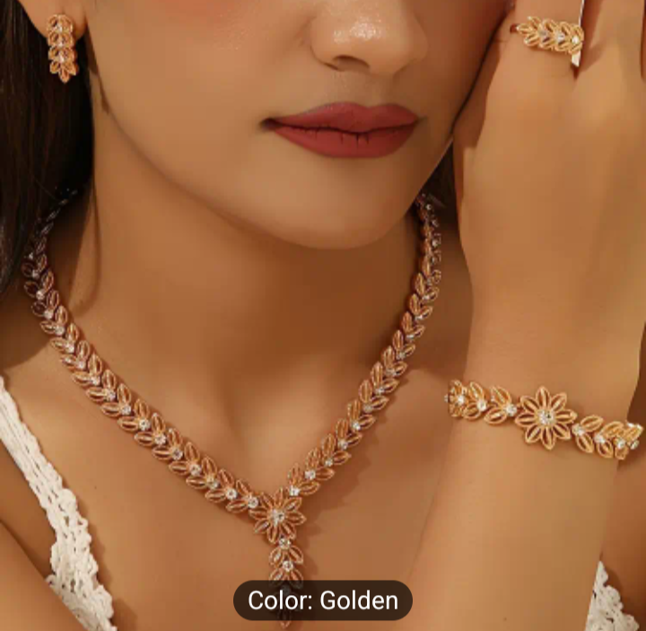 Vintage Pastoral 4-Piece Jewelry Set for Women - Alloy with Rhinestone Accents, Wheat Sheaf Design Necklace, Bracelet, Ring, Earrings - Versatile for Daily Wear & Vacation, Thanksgiving Day Celebration Gift