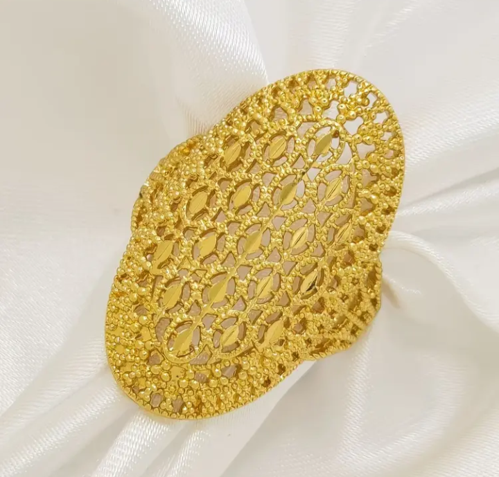1pc Exquisite Golden Vintage Brass Ring 24K Gold Plated Adjustable Wide Ring Arabian Bridal Wedding Jewelry