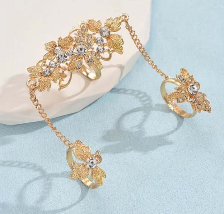 Fashionable Flower Inlaid Water Brick Luxury Palace Mitt Ring Daily Wedding Party Beach Dress Jewelry