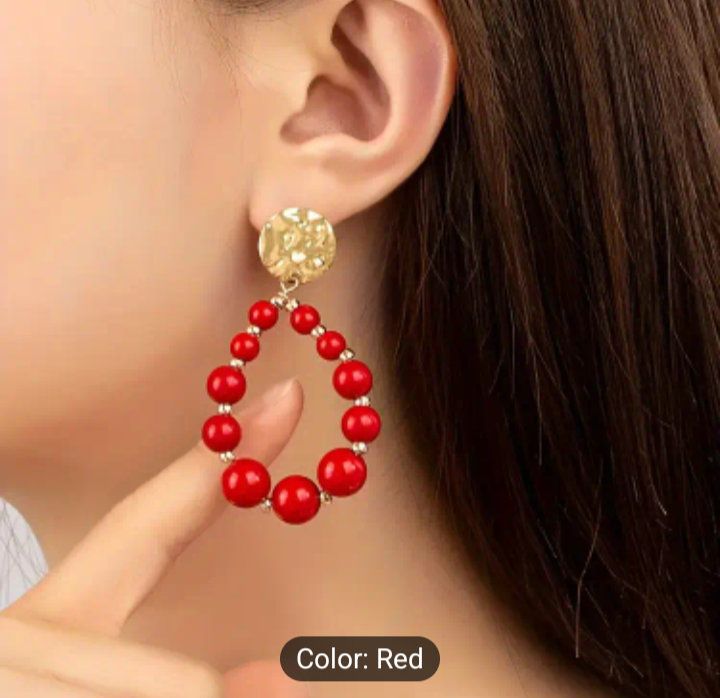 Elegant Beaded Hoop Earrings with Golden-Tone Accents - Chic Chinese Style, Iron Crafted, Versatile for Daily & Party Wear