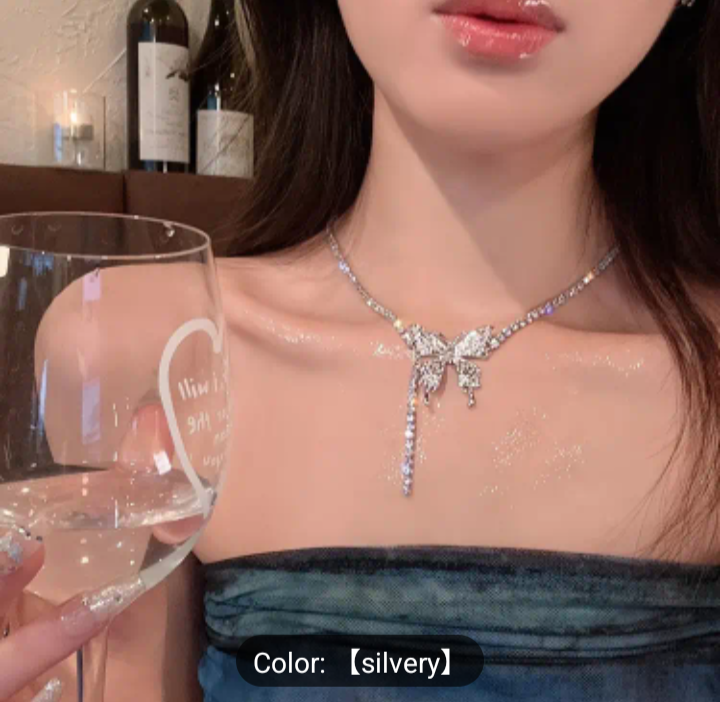Elegant Y2K-Inspired Sparkling Butterfly Tassel Necklace with Rhinestones - Chic Alloy Jewelry for Women, Perfect for Parties & Casual Attire,, Diamond
