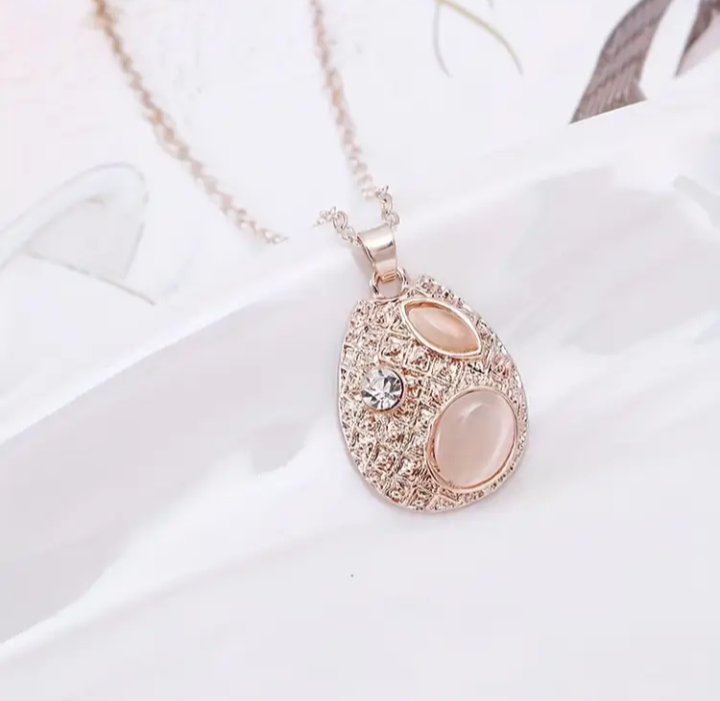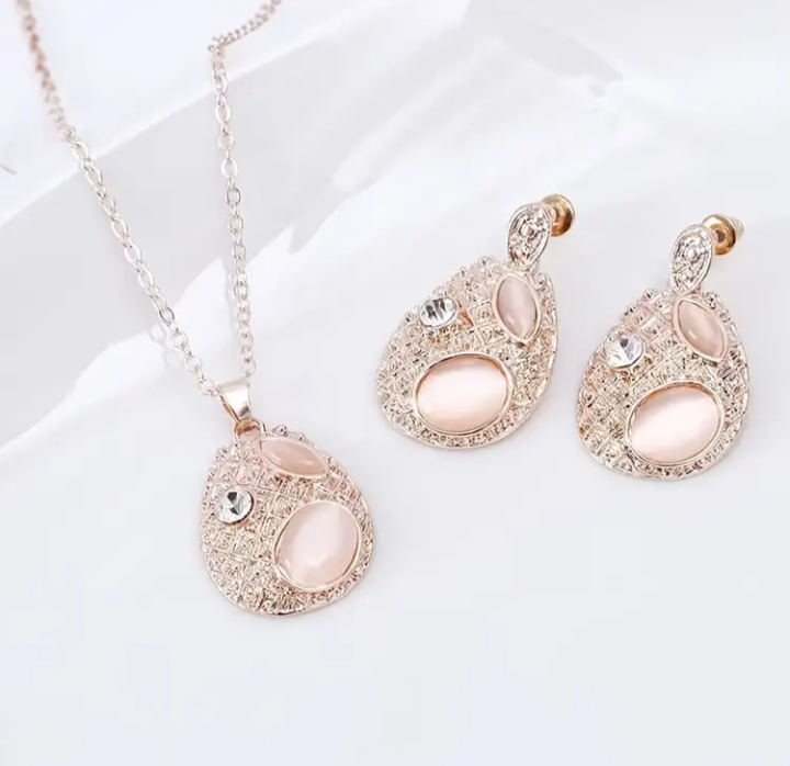 1 Set Vintage Tribal Style Rose Golden Plated Teardrop Rhinestone Pendant Necklace and Earrings Jewelry Set, Zinc Alloy, for Daily and Music Festival Occasions - All Seasons Compatible