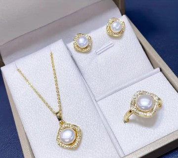 Luxury Women's Imitation Pearl White Inlaid Jewelry Square Four Piece Set for Birthday, Mother's Day, and Christmas Gifts for Women and Girls
